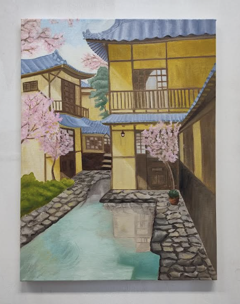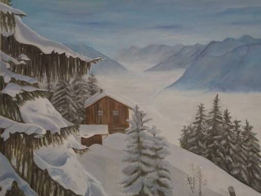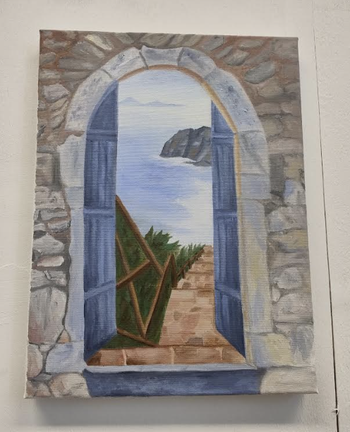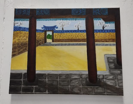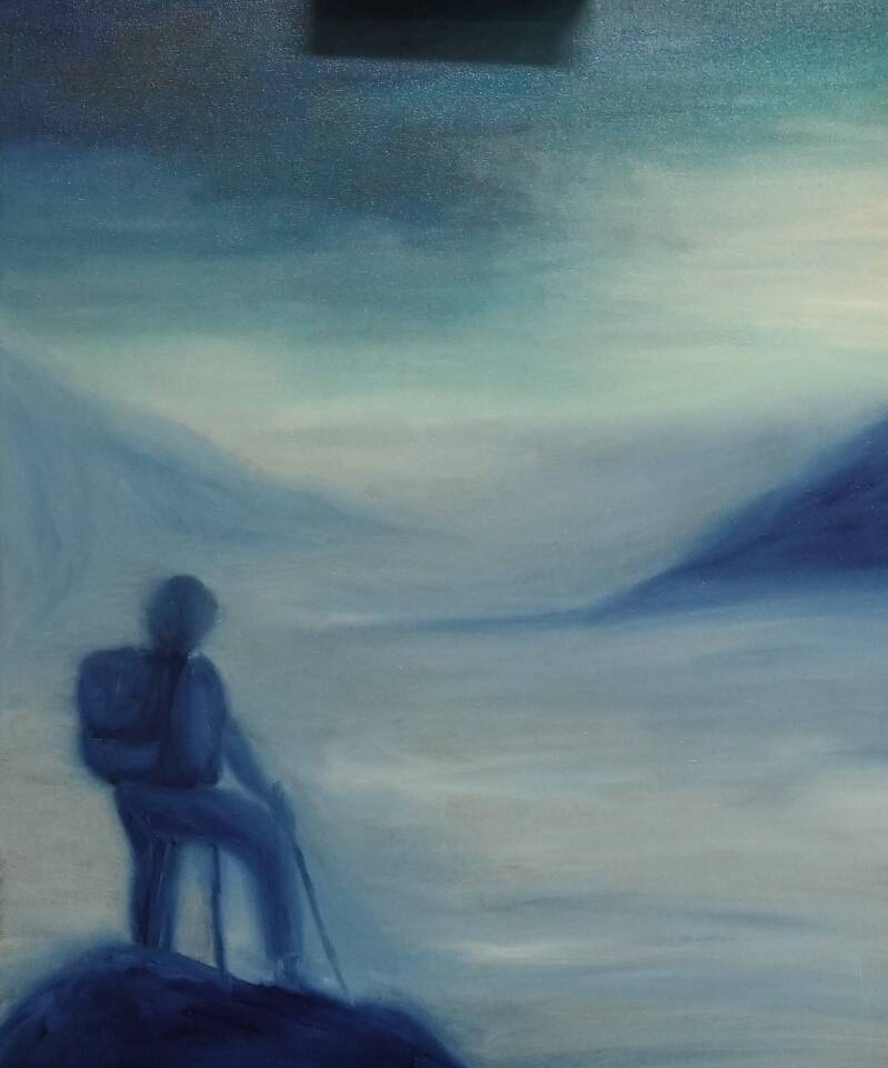 Ondergrond is gesso en acryl, 2021, 70x100 cm