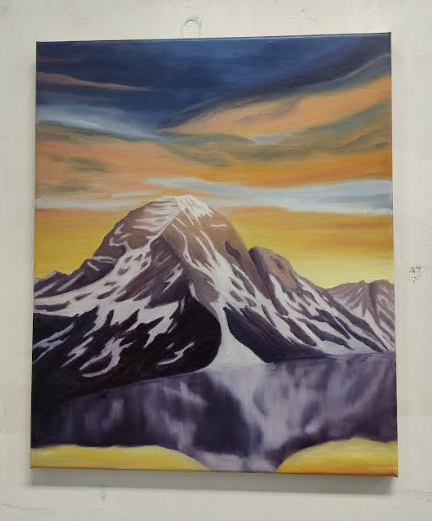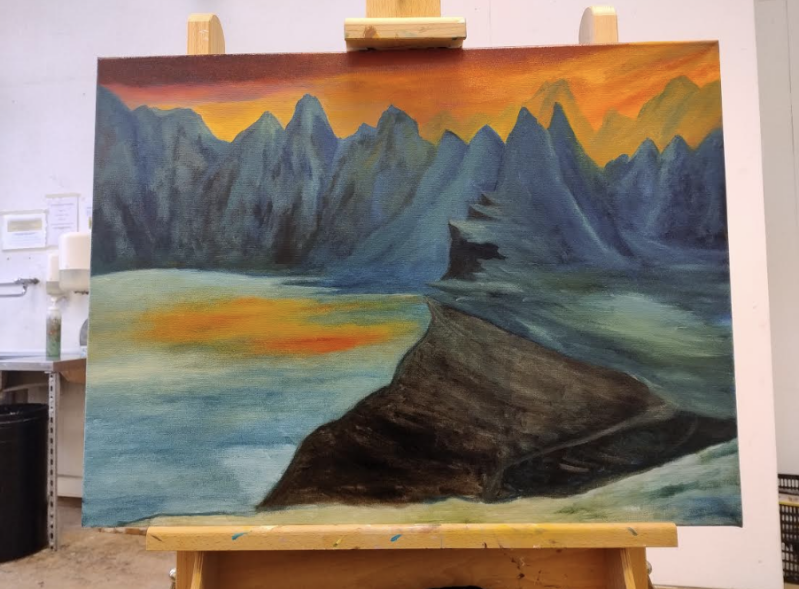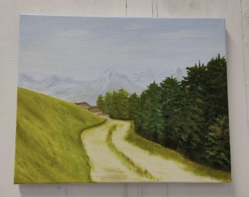 Ondergrond is gesso en acrylverf, 70x100 cm, 2021.